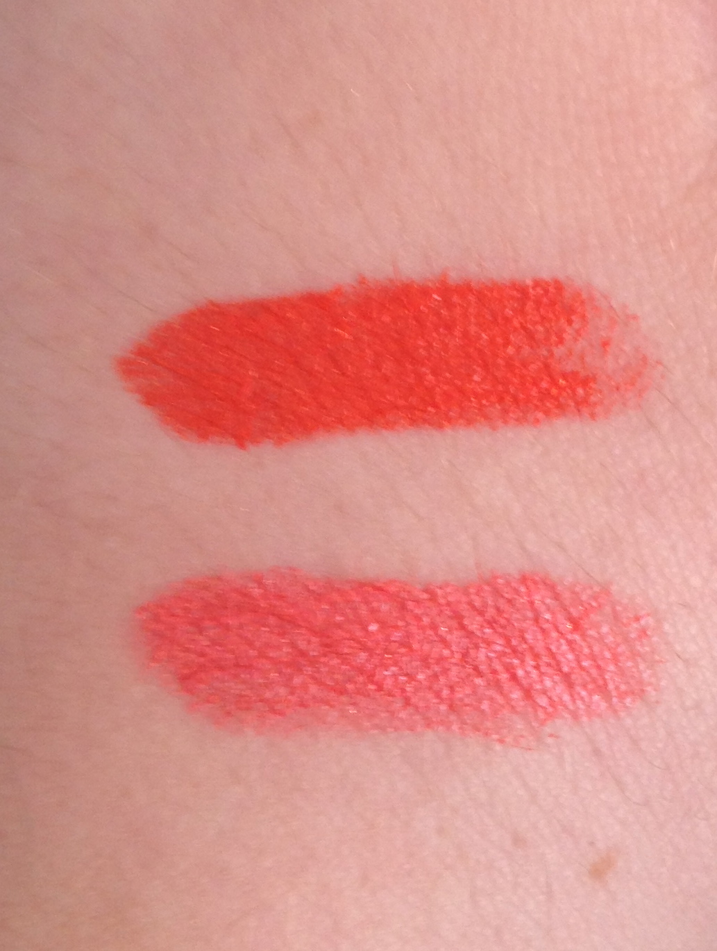I did mention that I would pick up Morange in my Coral Lips Post and compare it to Revlon's Siren so here are the swatches.